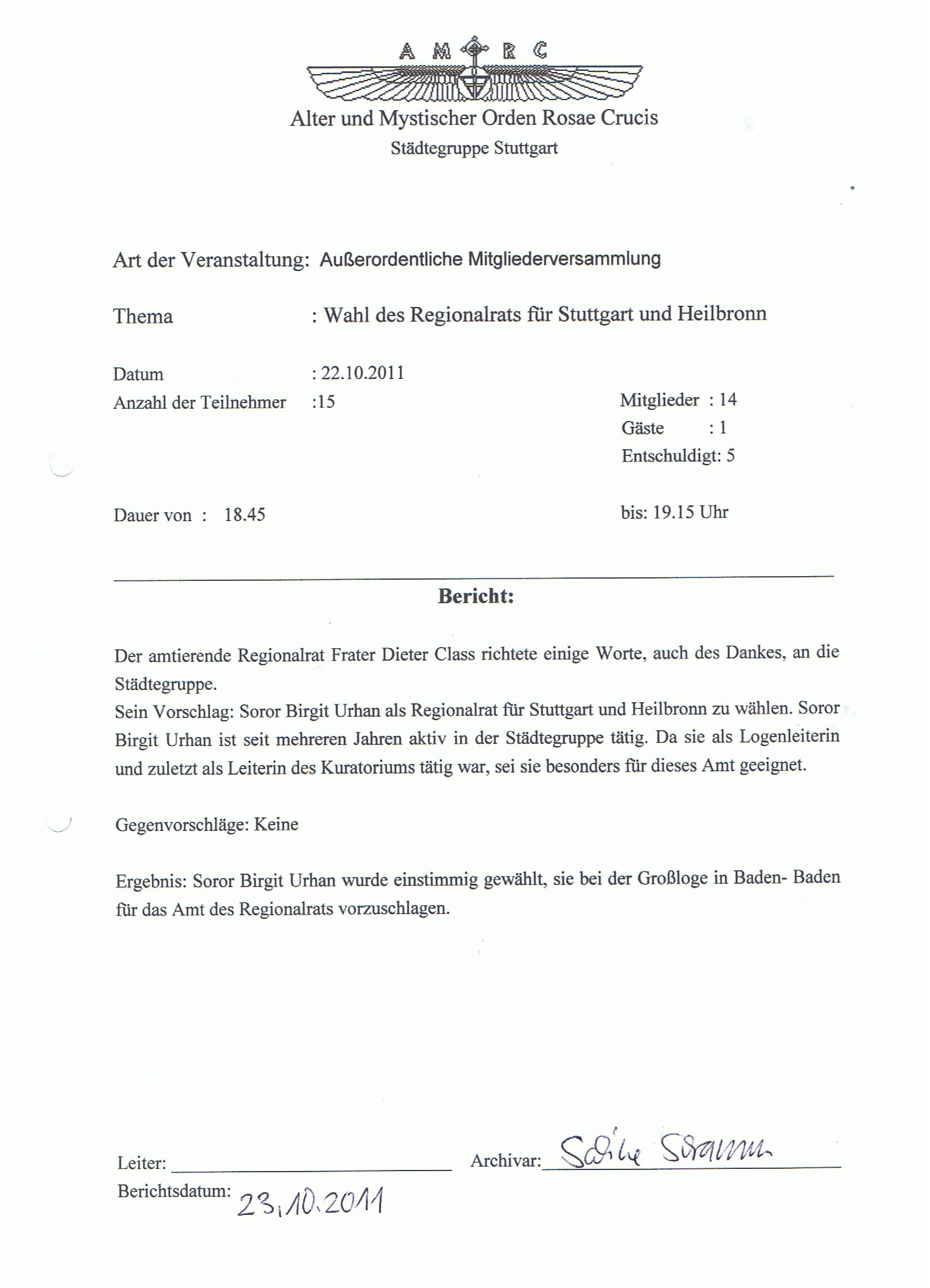 Hiermit schicke ich Dir das Protokoll unserer außerordentlichen Mitgliederversammlung über alle mir bekannten Kanäle mit der Hoffnung, dass Du diesmal das Protokoll erhalten wirst. Ich schicke es Dir und nicht Baden- Baden, weil Du es zuerst unterschreiben wolltest.